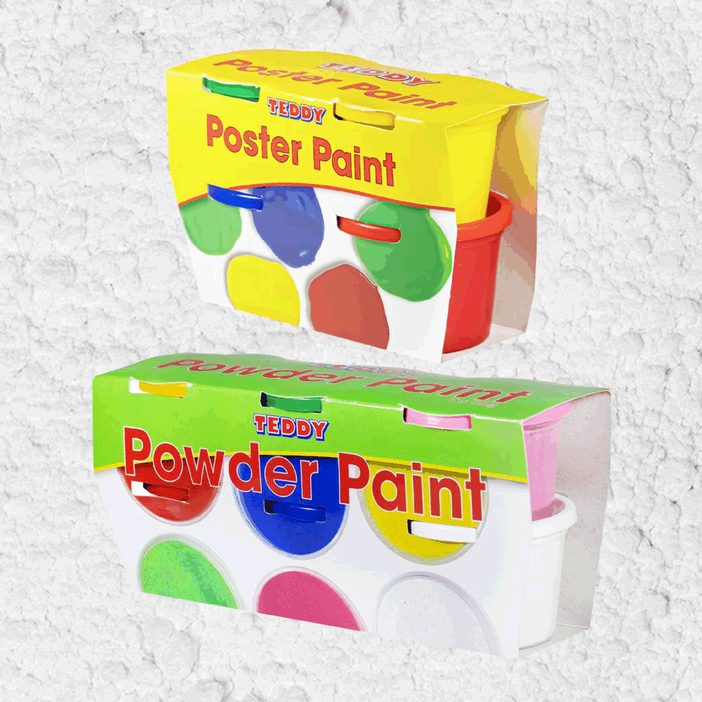 Teddy powder paint is available in this convenient pack of 4 x 100g and 6 x 100g colours.