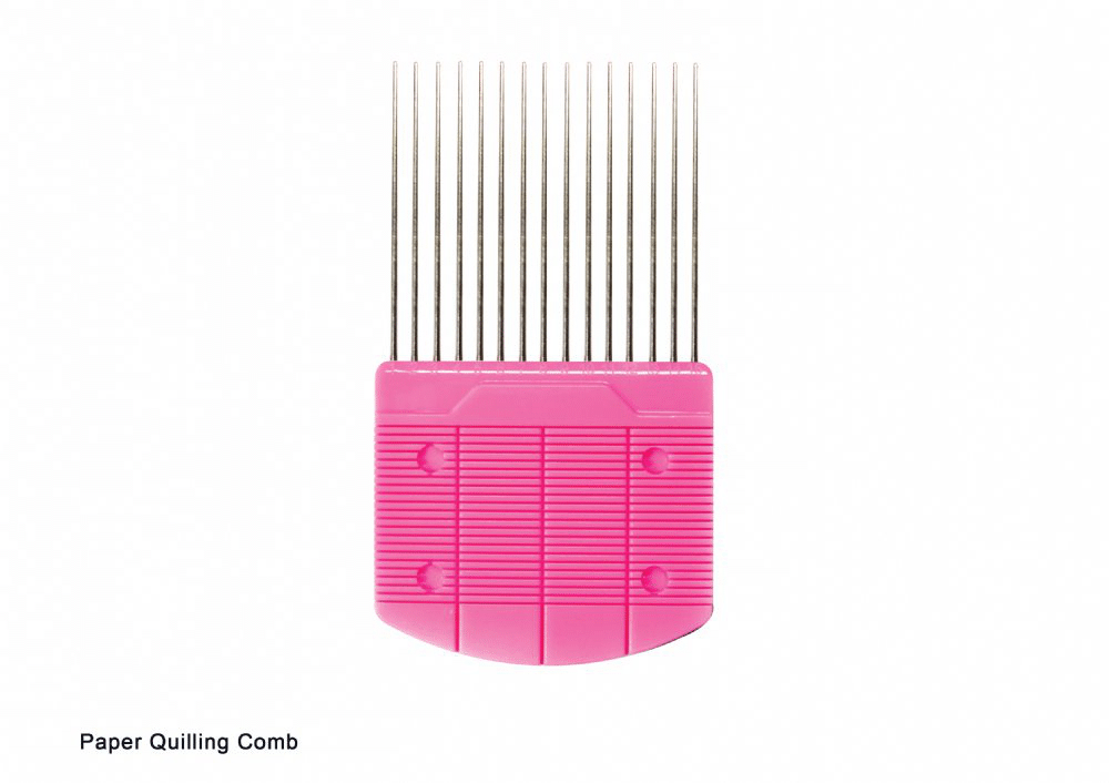 A quilling comb is a specialty tool that is used to create intricately laced loops. Individual or multiple strips can be weaved into infinite patterns and are often incorporated into floral art and landscapes.